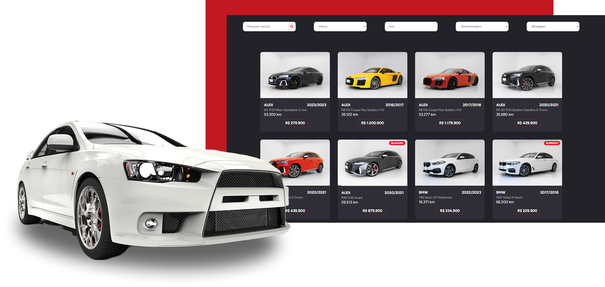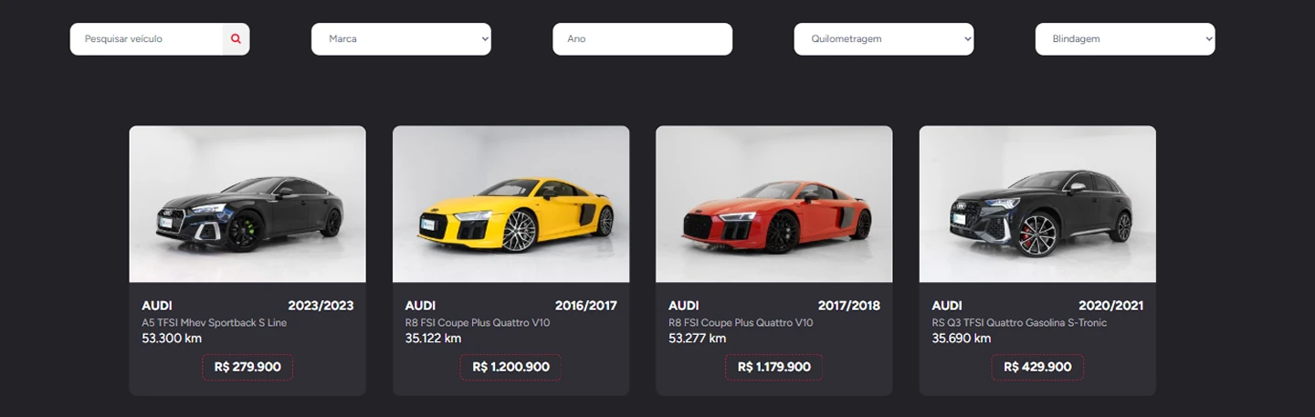 Estrututra semelhante a grandes portais, facilitando a busca de veículos de acordo com os critérios desejados.